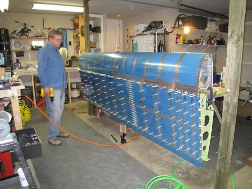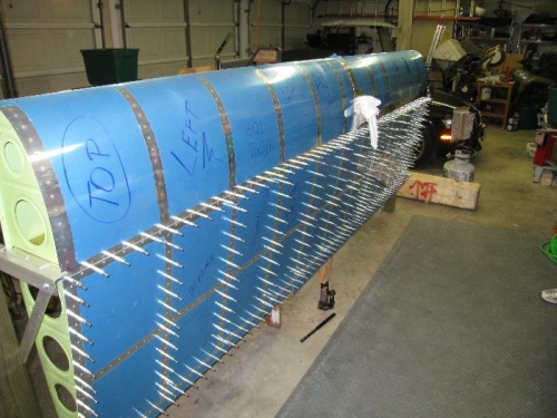 Temporarily attached the tank to the wing frame with screws every other hole and one or two bolts connecting the tank to the main spar.