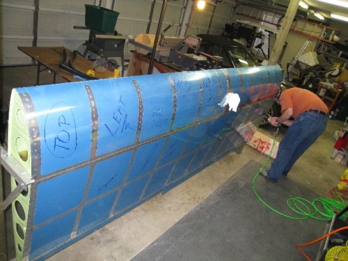 Finished riveting the top skins and the J-channel stiffener - The top of the wing is finished!