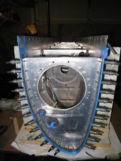 Prosealed in both end ribs with leading edge stiffeners and tank attach angle then mounted the pickup tube to the access plate and the access plate to the tank.
