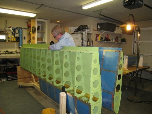 Riveted trailing edge of right wing skin.