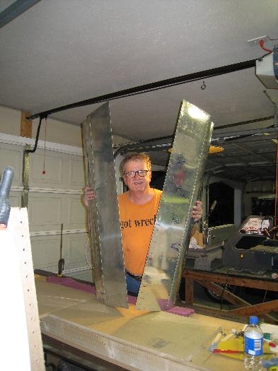 Setup steel angle iron on work table then placed an aileron on angle with sandbags to keep straight. This worked well, trailing edges were very straight after back riveting and the flush setting.