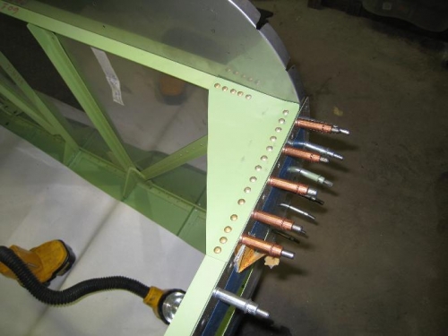 Riveted some bulkhead to floor ribs and firewall gussets.