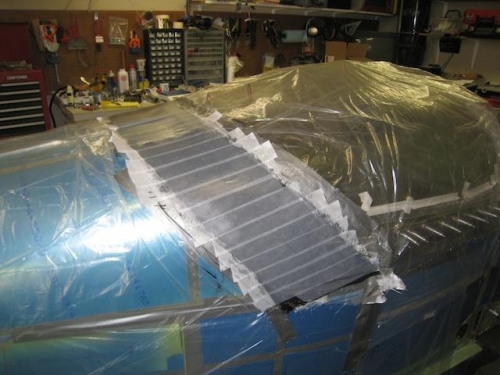 Layed fiberglass on duct tape to create aft canopy skirt.