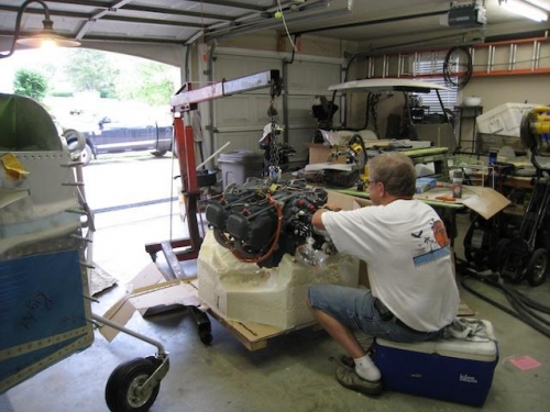 Borrowed an engine jack then took engin out of box and started working on external components before hanging on mount.