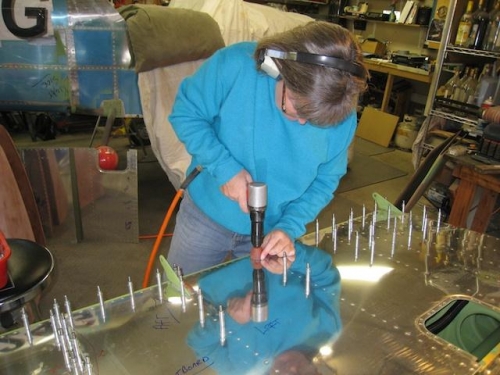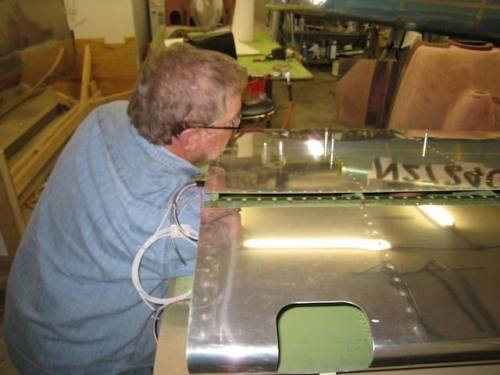 Riveted lower wing skins on left wing.