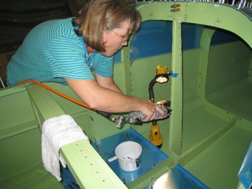 Drilled, dimpled & riveted platenuts to baggage bulkhead.