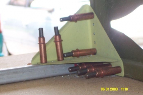 Assembled and drilled firewall mounting gussets.