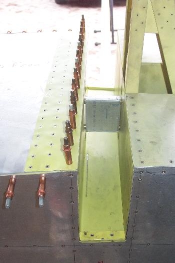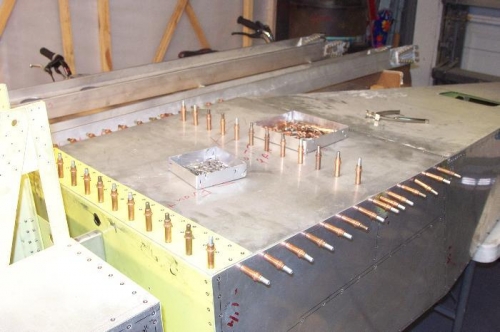 Finished attaching seat to spar box and station 2 at rear of seat. Marked and drilled pilot holes in spar box and spar for "spar notching" alignment bolts. Then fastened bottom pan on fuselage as per plans.