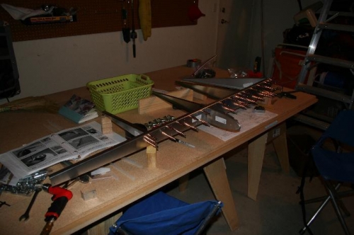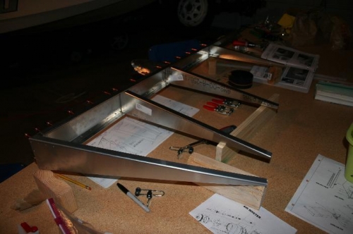 When drilling the bent strip, the second hole moved the piece off the line...(6T5-5)...drilled hole in wrong spot on bent strip (not spar)....this part will have to be re-ordered. Also, one of the red clamps broke.