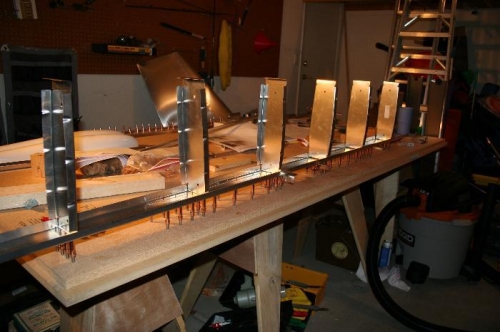 drilled all center ribs onto front spar, ensuring they were opened outboard.