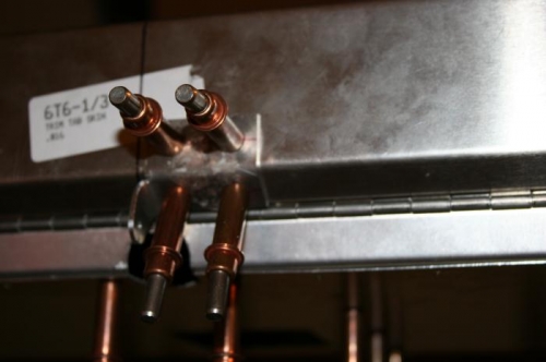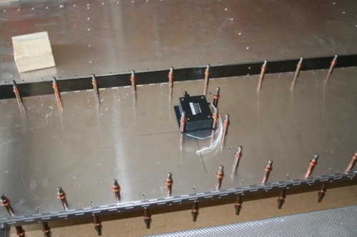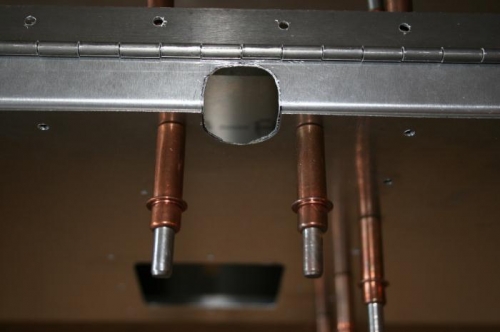 layout rivet lines for elevator trim servo drill servo attachments and cleko found centerpoint in trim channel flange and cut hole for control rod on trim tab horn, drilled pilot holes, alligned on centerline and drilled and cleko'd cut control rod to proper length