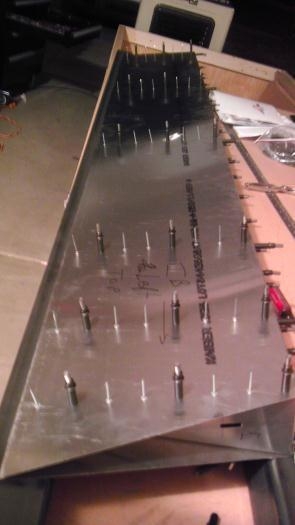 completed control plate slots marked and drilled inboard ribs for control plates deburred and prepared inboard ribs reassembled flaps and riveted found the trailing edge opposing rivets wouldn't fit...stop for investigation