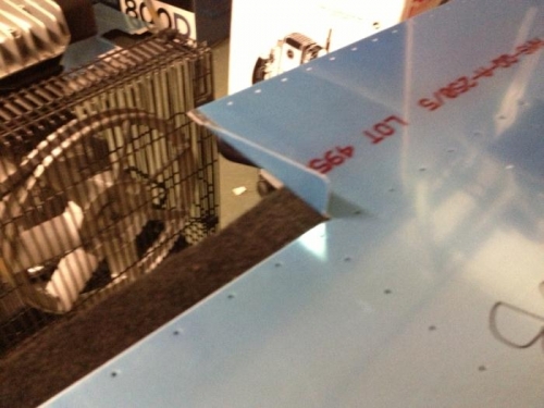 I did the close out tabs using roughly the specified method. Instead of using the work table, I put a small radius on the edge of my MDF back riveting board and clamped that to the work bench. The radius was required to ensure that the bend was not too sharp. It is worth noting that I used the specified locations for the bend, but did find when I added the shear clip later that there was a larger gap between the tabs and the clip than I would prefer. I advice is to keep the bend radius larger than is indicated in the diagrams.