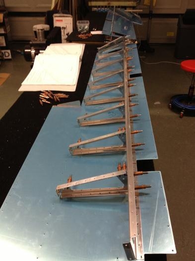 Final activity for the day was to start putting the structure together. It is one of the best parts of any of the component builds, getting the structure into place for the first time... The description of the positioning of the second side ribs could do with a little clarification. The ribs are installed upside down to allow the flange to be facing outboard. Page 9.11 gives the right picture....