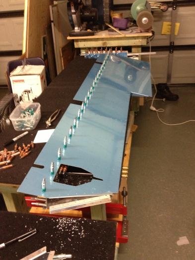 Completed adding the Front and rear spars along with the shear clips today. Care needs to be taken here to read the instructions. I kept on refereing to the section on riveting to ensure I understood what was happening. The connection of the rear spar to the Root rib is done using AN426-3 rivets so and while the instructions clearly express the fact that you should not drill to #30, they are not good at explaining why...