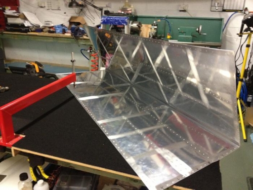 The HS skins are the first of the big dimpling challenges of the aircraft. I spent a good deal of time preparing to dimple and then executing the task. I managed to get half way today. No issues, just needed loud music so I could hear it through my hearing protection and many a drink. It was about 35 degrees celcius today in the workshop and I have to say, I was cooking...