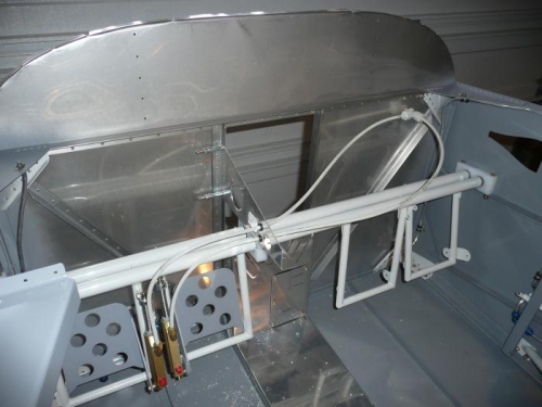 Finished riveting the F711/12 bulkhead to the aft end of the fuselage. I also installed the brake reservoir and hooked up brake lines to the master cylinders.