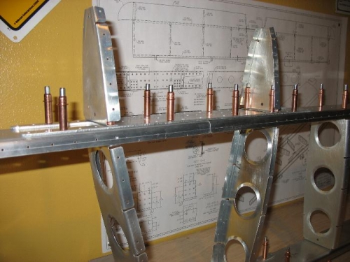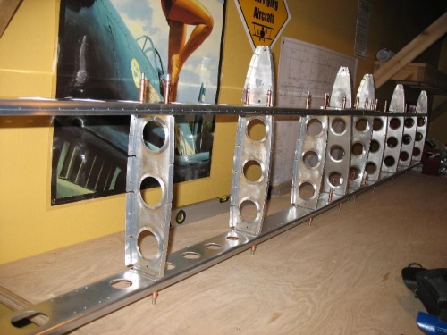 Drilled all 1/8 th holes to # 30 for HS sub frame. The next step is to manufacture the HS 908 R-L and match drilling to the forward spar and support. HS 912 have been match drilled and labled to be replaced in the proper spot. I will begin labling parts so I can replace them in the correct spot upon reassembly.