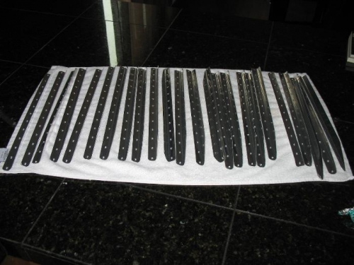 E908 stiffners were produced today, 24 Stiffners cut, shaped with the scotchbrite wheel, 324 holes drilled, dimmpled, and deburred. I can't see straight.
