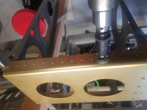 Today I spent a few hours countersinking the rivet holes on the main spar.