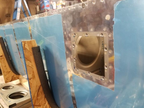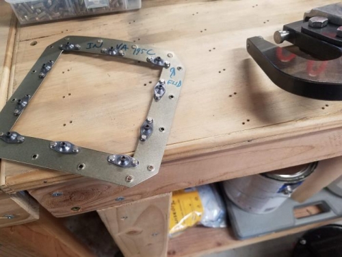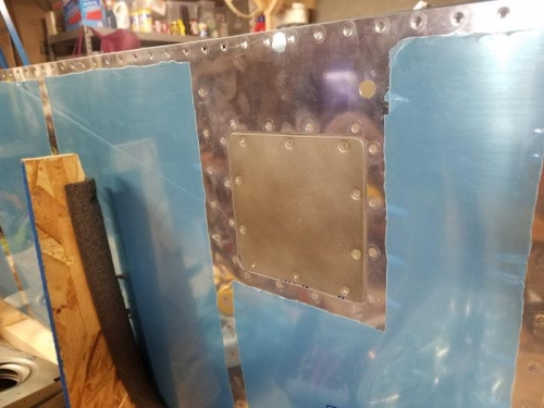 I also riveted the access plate for the stall warner system. I riveted nut plates to the support plate and then riveted that to the leading edge skin. I'm not installing the stall warner system because I plan to use an AOA system but I had to fill the pre cut hole in the leading edge skin. I also put AN426AD3-3 rivets in the holes in the leading edge where the stall vane was supposed to go. The filled the holes nicely.