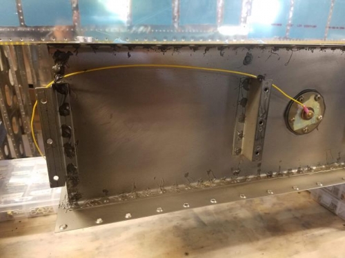 Finally, I put all the screws holding the tank to the spar and leading edge in.