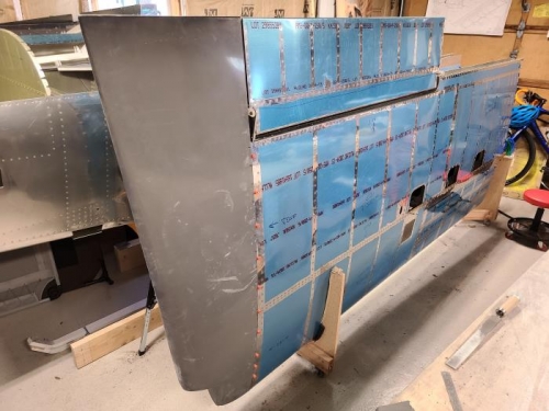 Today I riveted all the platenuts on that will accept the screws that will hold on the inspetion covers.