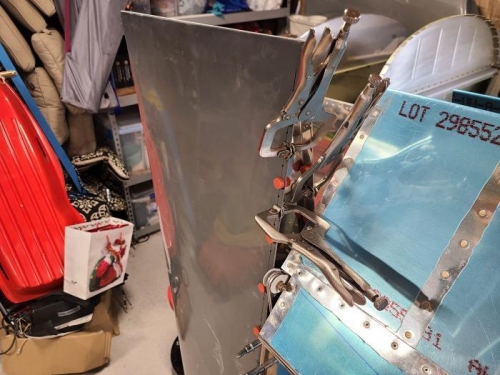 Today I continued working on the left wingtip. I temporarily put the wingtip rib in and then marked where it would go. I then removed the wingtip and laid out the rivet lines as called out in the instructions. Finally, I used magnets to hold the rib in place and clecoed the tip back on the wing. I then used clamps to make sure the rib didn't move and drilled the rivet holes.