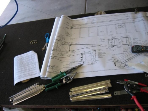 Cut out the 32 aileron skin stiffeners using the tin snips (very hard on the hands). Match drilled and dimpled the aileron skins to the stiffeners. Cat supervised. He was very happy to see the airplane factory open again.