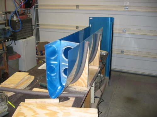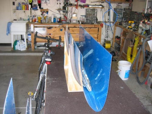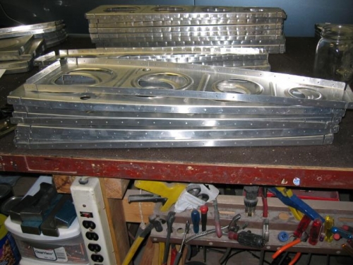 Finished rib preparation work, quite the pain. Built the saddle that will hold the tanks and leading edge during construction.