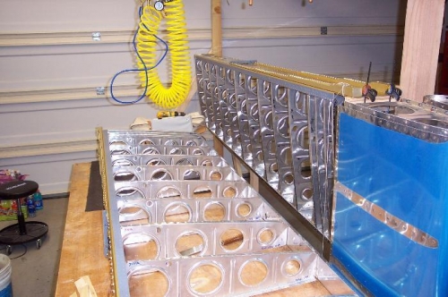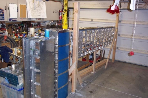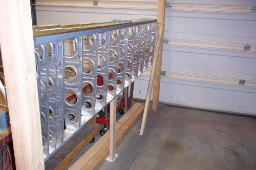 Built wing rack for wing assembly. It came out nice and straight. Lots of work involved as driving concrete anchors was very difficult. Next week I will build the wing storage rack to store the wings after the leading edges are attached. Funny story, as I was driving concrete anchors into the flor after the hole was drilled, my cordless drill blew a cell and smoked the battery pack. Got my first summer elctric bill.... $375. Lower than last year and I was in the garage much less than this year.