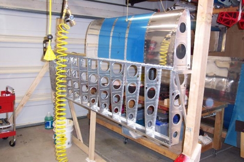 Set the right wing LE in place and installed the Right wing fuel tank. This is time consuming due to the alignment being critical at this time between the LE and the tank. Once the alignment is set and the wing is assembled the clearance between the LE and the tank is permanently set.