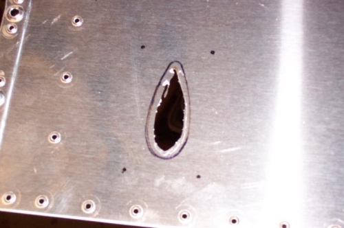 Cut the hole for the pitot tune fairing. Match drilled everything and prepared the backing plate for riveting. 506 hours to date on this project.