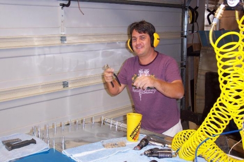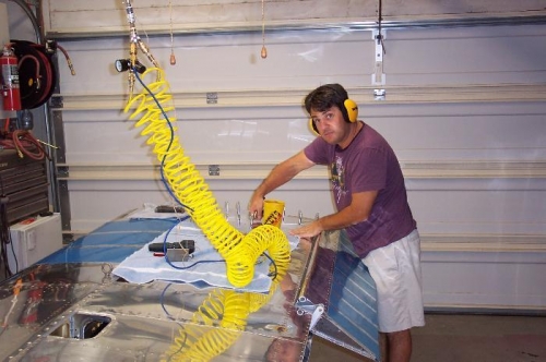Jim and I work together as operation managers at Intel and got off work early today. Yaa!!! He is an A&P from his previous life and offered to help with some riveting. We knocked out the last of my left bottom wing skin! Thank you Jim!