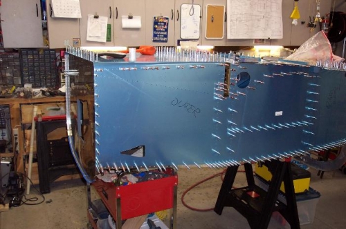 Drilled the holes that attach the firewall to the fuse skins. I also fit the armrests and side skins to center rib holes. Lots of drilling and Boelube.