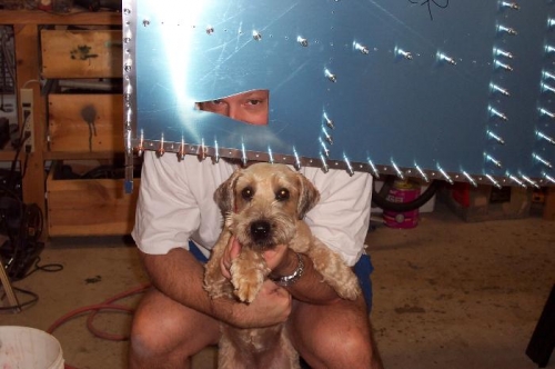 Continued working on the forward structural components. Drilling, dimpling, countersinking.... etc. The dog and cat came out to check on all noise.