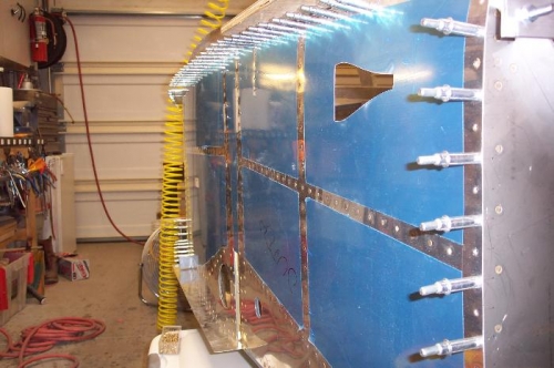Finished riveting the side skins to the fuse. Aaron helped me with the lower rviets that I can not reach. Very tiring bending over all day.