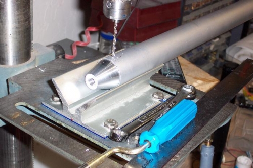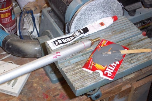 Cut both elevator pushrods to length. JB welded the end fittings in place. Drilled and riveted the end fittings per the plans. Primed everything. Installed the control column and the forward elev pushrod. Bolted it in place including the middle bellcrank assembly.