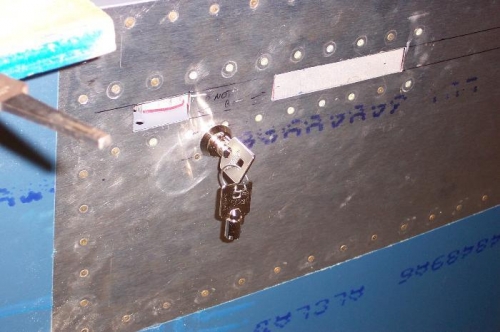 Installed the canopy lock on the latch. This required further modification to the handles. Drilled lightening holes in the handles. Started working on mounting the fuel selector valve.