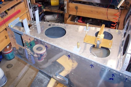 Removed the horz/vert stab from the tail. Did some cleanup on the parts and stored them again. Riveted on the ELT bracket, trimmed the horz stab attach brackets. Molly Helped! I also riveted the last of the nutplates that hold the emp fairings. Lots of little work today.