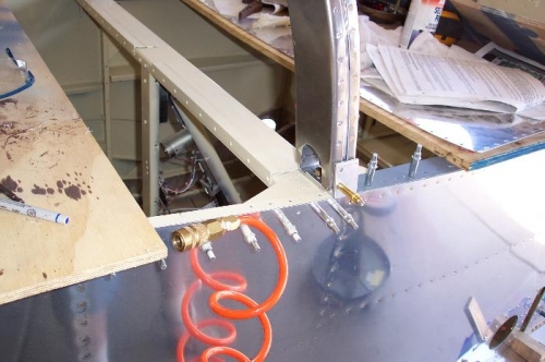 More cabin frame fitup work today. Painted the F-732A frame and installed the coat rack bracket. Deburred the hold down fittings and continued the match drilling process. Slow time consuming work.