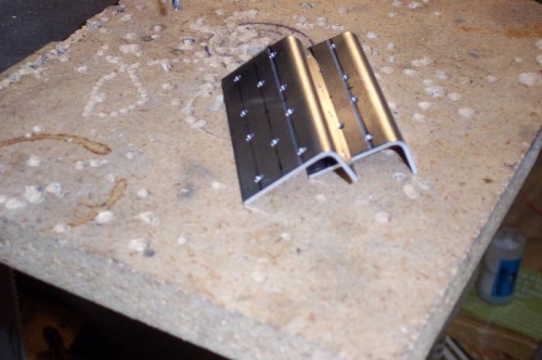 Over the last few days I have spen time fitting up the canopy frame and making sure everything is properly aligned. I made the 613 splice plates and fit them in place along the side rails. Match drilled/dimpled and riveted them in place. The shims where not a big deal, just took time to make them right. I also drilled the top splice plate thus everything is clecoed together. I did start working on the frame stiffeners. Lots of bending and tweaking.