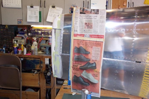 Sanded down the filler I slopped around last weekend. Added a few more little spots. Masked and primed the affected areas.
