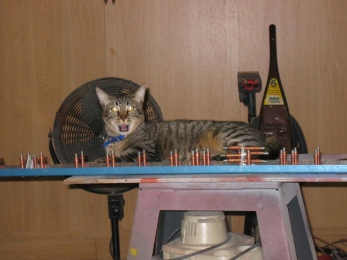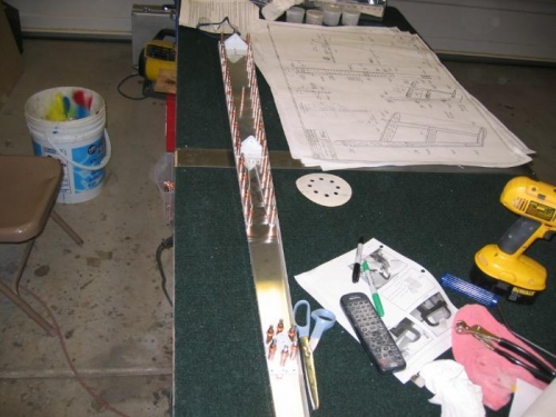Layout of the HS spars, fluted and prepped the HS ribs. Bending, trimming and clean up of the HS spar stiffeners took awhile. Layout of the VS Spar and ribs. The Cat helped.