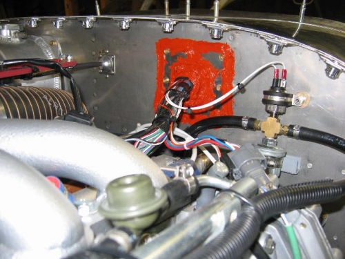 Finished reworking oil cooler mount and ducting to make the cooler sit horizontaly. Trimmed lower cowl for oil cooler exit. Sealed main wire harness pass through on firewall.