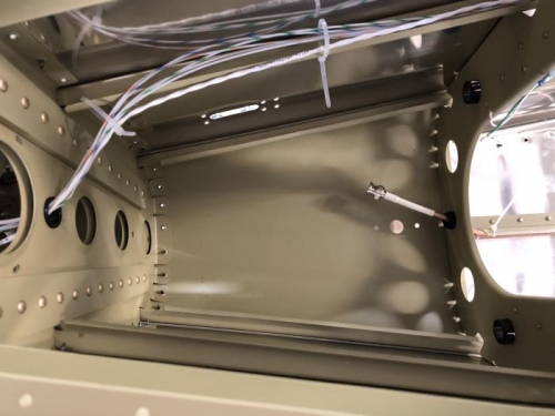 Installed the skid plate in the tail cone. It needed a little wiggle here and there, but it slide in without an issue. I then clecoed it all up. My wife helped me with back riveting some of the tailcone sides. Also routed the wiring. I purchased the FLYLEDS kit with the taillight and wiring harness. I am not going to use the tail light wire with the kit since the FLYLED has the correct wiring.