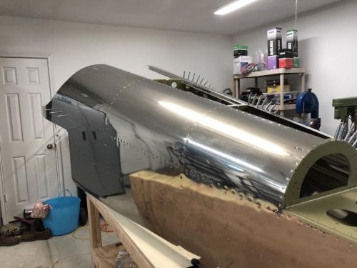 Side skins have been dimpled and the top skin has been riveted with the rib and stffener.