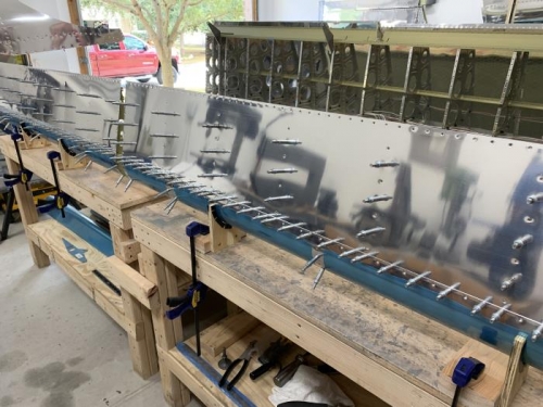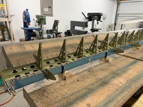 The plans state to use back riveting on the last two rivets on each rib. I found that my extended thin nosed yoke for the squeezer fit right in there. No need to back rivet and everything remained true with no distortion.
