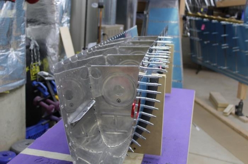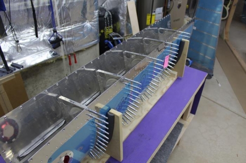 I Re-assembled the Right Fuel Tank. As with the Left Tank, putting the whole thing together makes is far easier to remove a rib, Proseal and Rivet it back into place. I completed two Ribs today. Looks good.