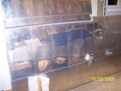 It took five hours and two people to put the bottom skin on the lh wing. With the help of Drew Wright we finished up the LH wing Bottom Skin. Alot of shooting and bucking going on here.